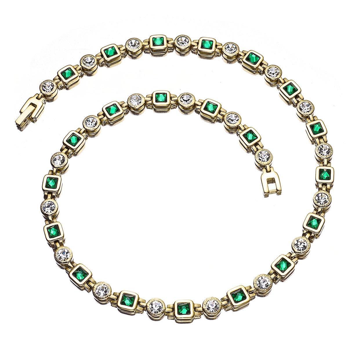 [Ready Stock] Wholesale Crystal Magnetic Necklace - 8mm Stainless Steel Health Jewelry - 3000 Gauss Magnets (Emerald/Ruby Colors)