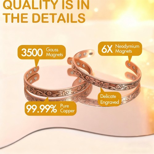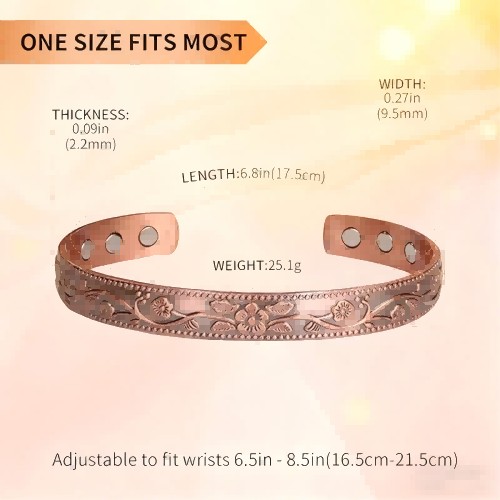 99.99% SOLID COPPER: Crafted from 99.99% pure copper, this hypoallergenic, lead-free, and nickel-free magnetic bracelets for women ensures maximum comfort and durability.